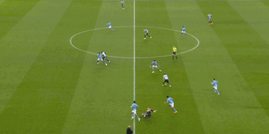 第53分钟,多库传中,B席前点一垫,塞门约包抄破门,曼城打破僵局1-0!